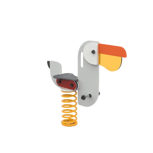 Equipamento BragPLAY, mola TARTARUGA (AQL - 0.45m), composta por 1 assento, 2 painéis laterais em forma de tartaruga e painéis decorativos em forma de carapaça em Bragpo, 2 barras de apoio em tubo Ø25mm em aço inox, uma para as mãos e outra para os pés, 1 mola em espiral cor amarela. Ferragens em aço electrozincado. Fixação ao solo tipo X (aparafusar).